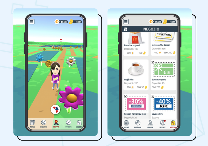 - Raccolta di monete digitali in base agli spostamenti reali degli utenti