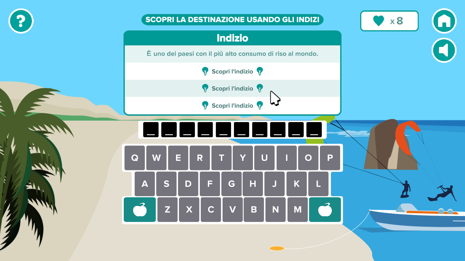 In Guess Your Holiday il videogiocatore dovrà indovinare la sua prossima meta per le vacanze estive attraverso una serie di indizi che potrà scoprire, ma attenzione i tentativi sono limitati!
