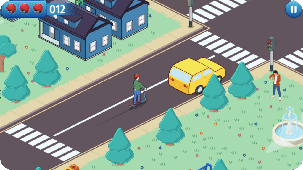 - La meccanica: Il gioco non inizia se il personaggio non indossa il casco. Una volta in strada, l’obiettivo non è arrivare primi, ma arrivare sani e salvi rispettando le regole.