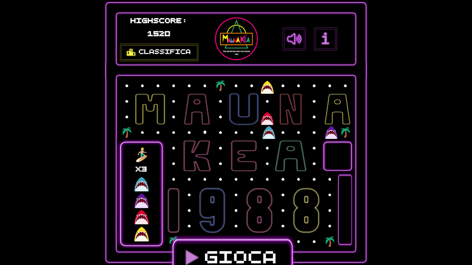In questa versonione branded di Pac-Man, si è ispirati allo stile hawaiano.